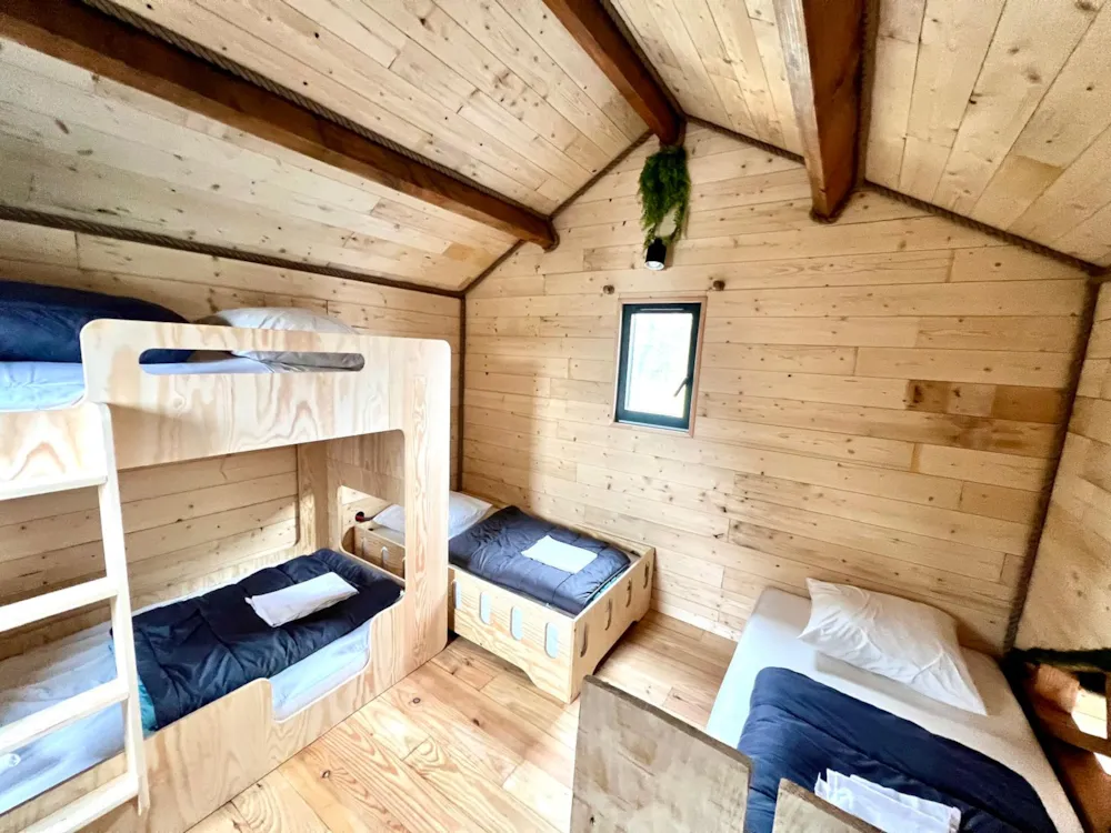 La cabane dans les arbres des Pêcheurs dispose d’une superbe terrasse suspendue en avancée sur l’eau , pour une vue époustouflante sur l’étang. Idéale pour 2-3 personnes, cette cabane est assez spacieuse, et est en gamme aventure ( sans eau, sans elec ) avec toilettes sèches dans la cabane. C’est partit pour l’aventure en pleine nature !