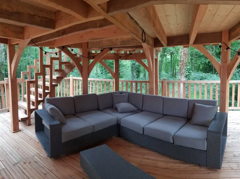 Les + : la plus belle terrasse surélevée (2m plus haut que la cabane)